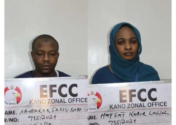 The Economic and Financial Crimes Commission, EFCC, has arraigned a husband and wife, Baba Sule Abubakar Sadiq and Hafsat Kabir Lawal, alongside two others, Abdullahi Bala and Ladani Akindele, before Justice Amina Bello of the Kaduna State High Court for obtaining money by false pretence, money laundering and stealing to the tune of ₦197,750,000 (One Hundred and Ninety Seven Million, Seven Hundred and Fifty Thousand Naira).