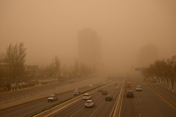 The strong winds are coming from a cold vortex system over Mongolia and are expected to last through the weekend.