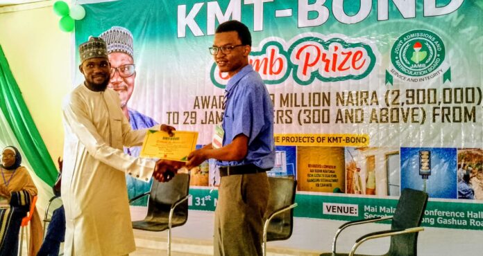 Kashim Musa Tumsah (KMT), a prominent development activist and philanthropist, has presented ₦2.9 million to 29 exceptional students from Yobe State who excelled and scored above 300 in the 2025 Joint Admissions and Matriculation Board (JAMB) examinations.