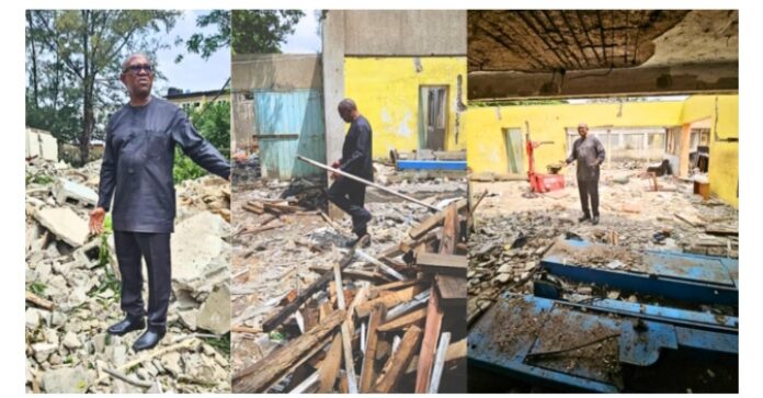 The Labour Party presidential candidate in the 2023 election, Peter Obi, has condemned the demolition of his younger brother’s property in Ikeja, Lagos, describing it as “illegal” and carried out without a court order or official permit.