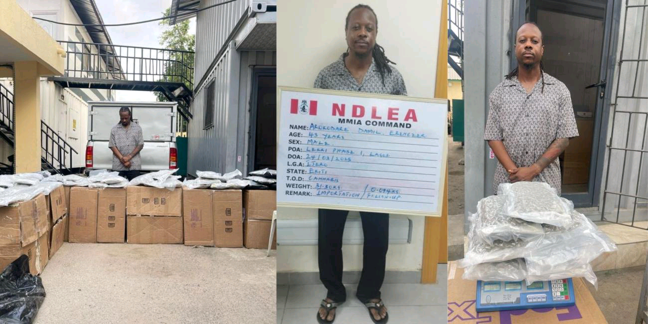National Drug Law Enforcement Agency (NDLEA) has apprehended Arokodare Damil Ebenezer, the owner of Damillionz Takeout and a businessman based in Lekki, Lagos, for his alleged involvement in the importation of 60 parcels of Loud, a potent cannabis strain, from the United States to Nigeria.