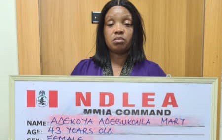 In a statement by the NDLEA’s Director of Media and Advocacy, Femi Babafemi, on Sunday, the agency said Adekoya, who claimed to be travelling to India for fibroid surgery, was arrested by its operatives at the Murtala Muhammed International Airport (MMIA), Ikeja, Lagos.
