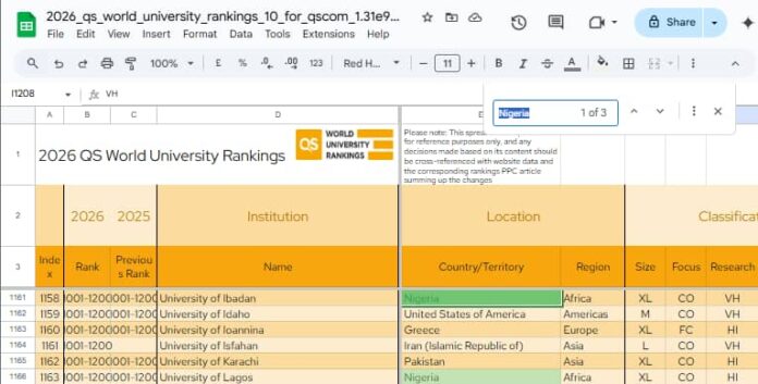Only three Nigerian universities managed to secure spots in the Quacquarelli Symonds 2026 World University Rankings released on Thursday, but none ranked within the top 1,000 globally.
