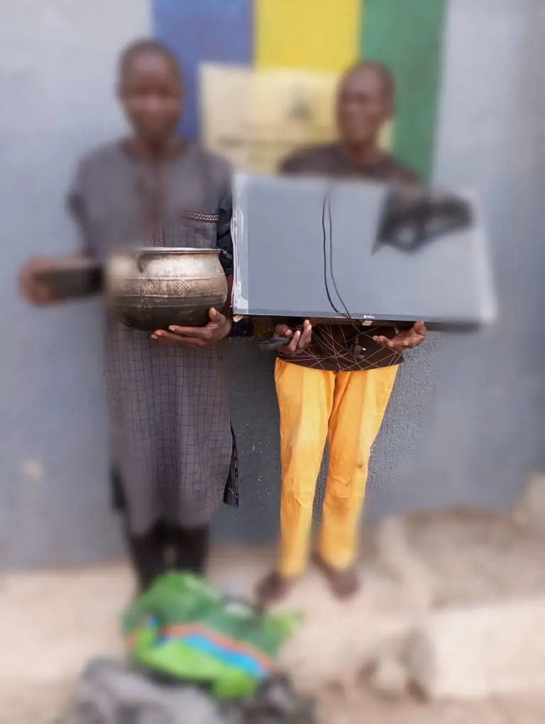 According to reports, the suspects stole a 35″ plasma TV, a remote control, and two aluminium pots when they broke into a house in the Brighter area of Minna, the state capital.