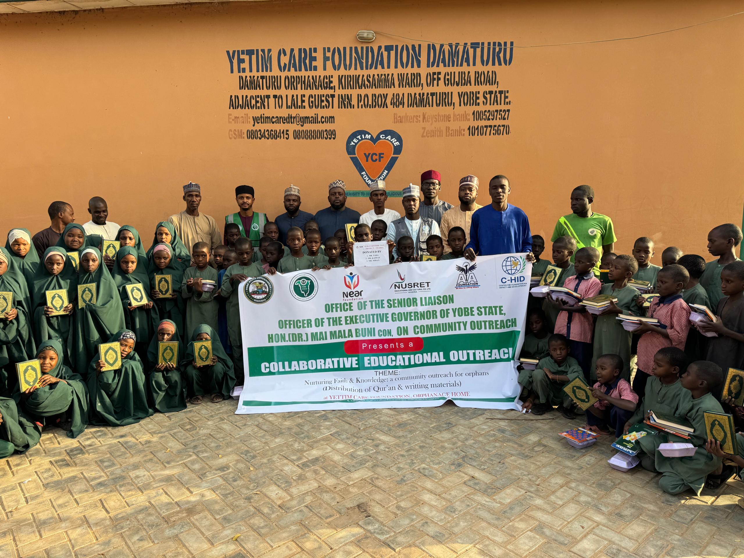 The Office of the Senior Liaison Officer to the Executive Governor of Yobe State, His Excellency Hon. (Dr.) Mai Mala Buni CON, on Community Outreach, led by the Senior Liaison Officer, Muhammad Umar Danfulani, in strategic partnership with AIA Foundation, Nusret Educational and Cultural Co. Ltd, Near Foundation, and the Center for Humanitarian Impact and Development, successfully implemented a Collaborative Educational Outreach Programme aimed at uplifting orphaned children through education, moral guidance, and community-driven support in Yobe State.