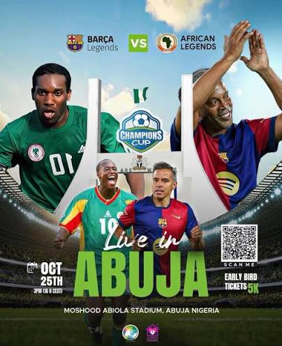 Football fans in Nigeria are in for a treat as a star-studded charity match brings together Barcelona Legends, the famed former players of Barcelona Football Club, and a select squad of African Legends. The exhibition match will take place at the Moshood Abiola National Stadium, Abuja.
